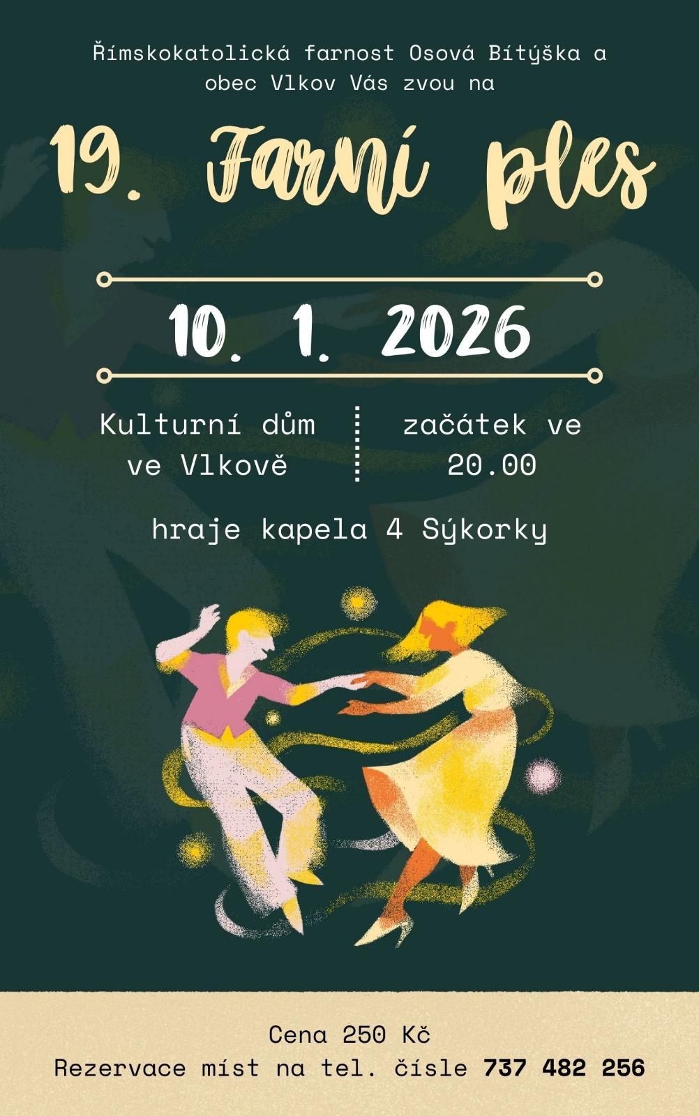 v sobotu 10. ledna od 20:00 hodin v kulturním domě ve Vlkově